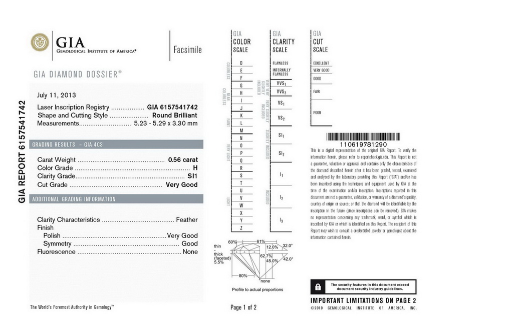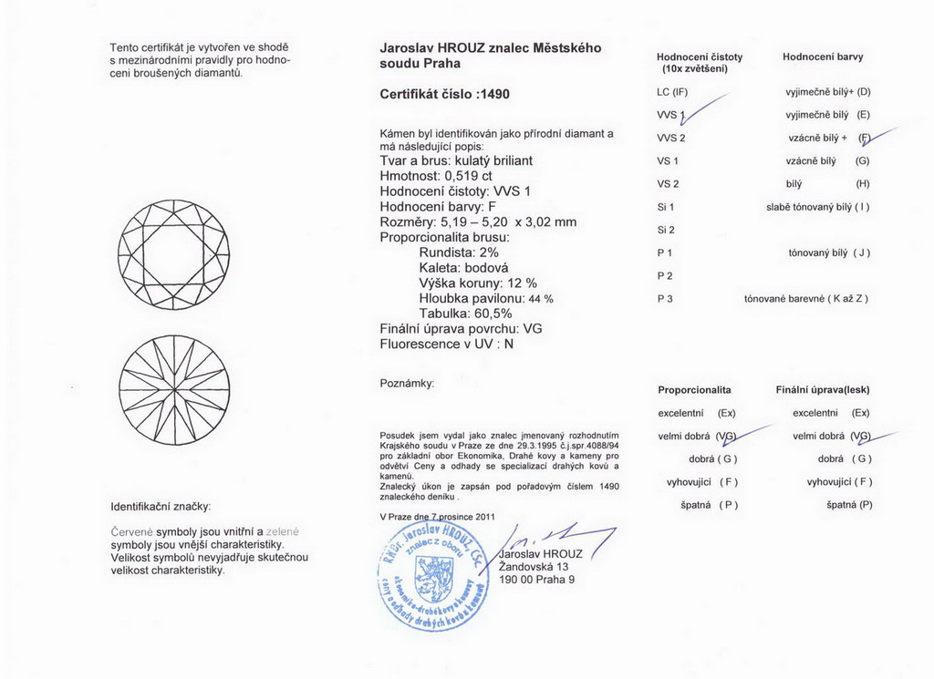 Podle parametrů, stanovených na certifikátu se stanovuje cena. Pokud byste koupili diamant čistoty SI1, ale certifikát by uváděl čistotu VS1, přišli byste o spoustu peněz.